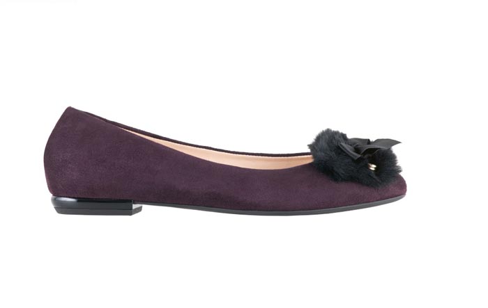 PIROUETTE – balerinke nikada ne izlaze iz mode, ali svake sezone dobiju novo ruho i zablistaju novim šarmom. Crni krzneni pompon i satenska mašna pričvršćeni su ukrasnom iglom na balerinke u boji šljive i to ovaj model čini posebno privlačnim.